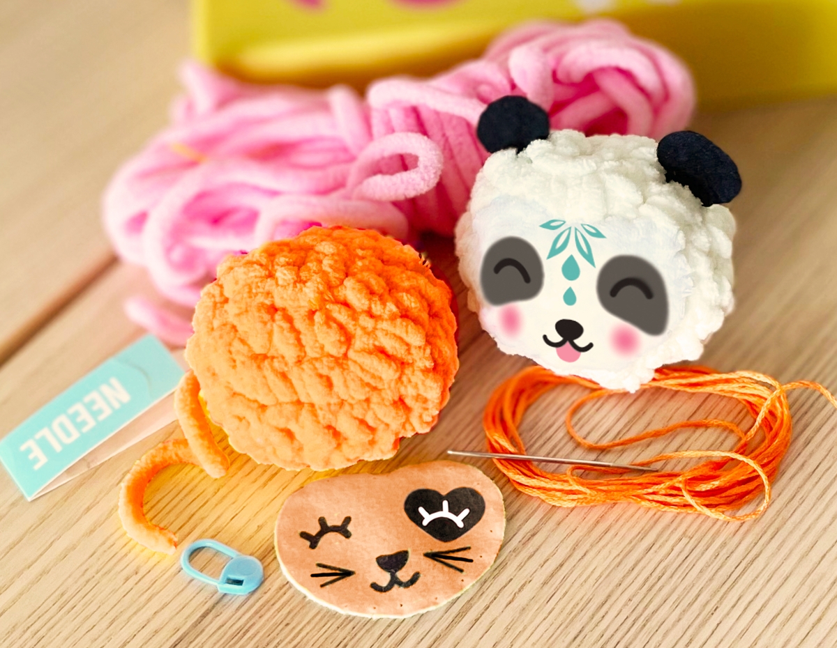 Das perfekte Häkel- und Nähset zum Gestalten von süßen Tierköpfen. Die niedlichen Plüschanhänger sind ideal als Anhänger oder zur Dekoration.
