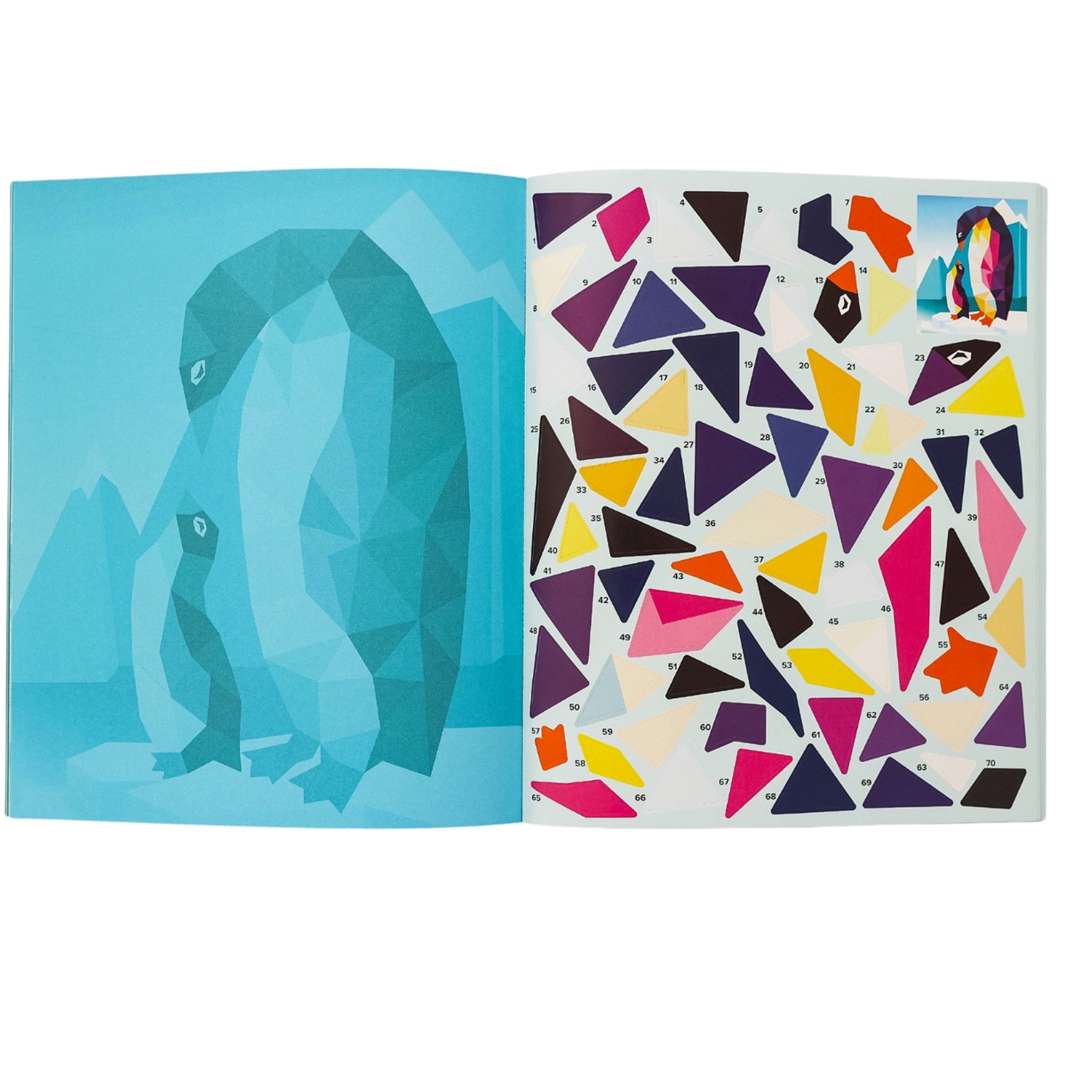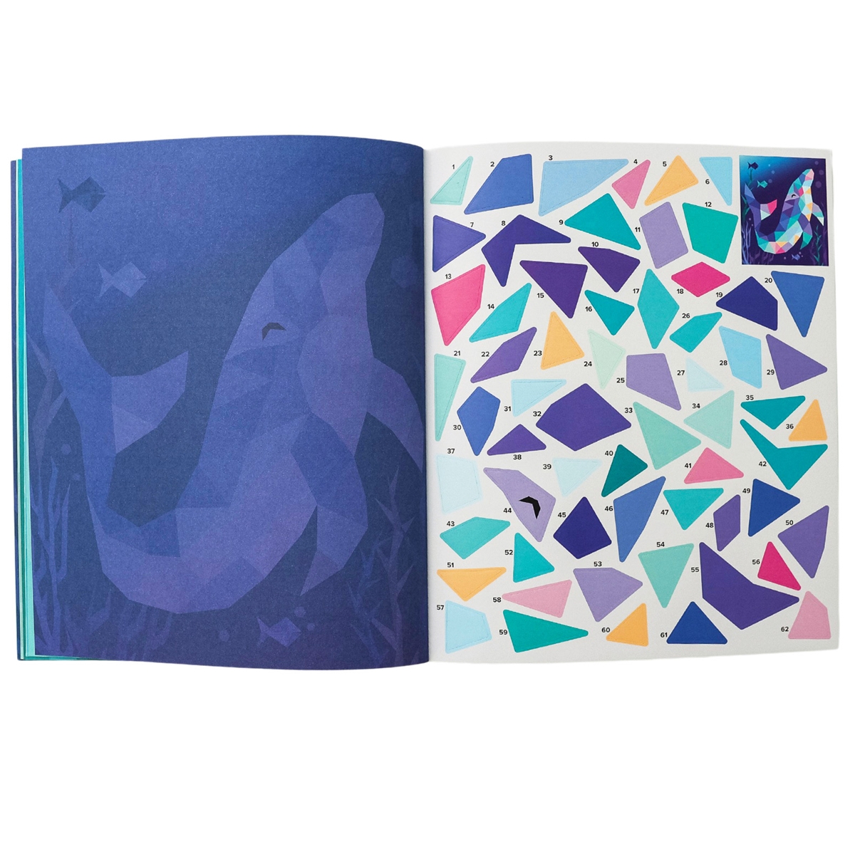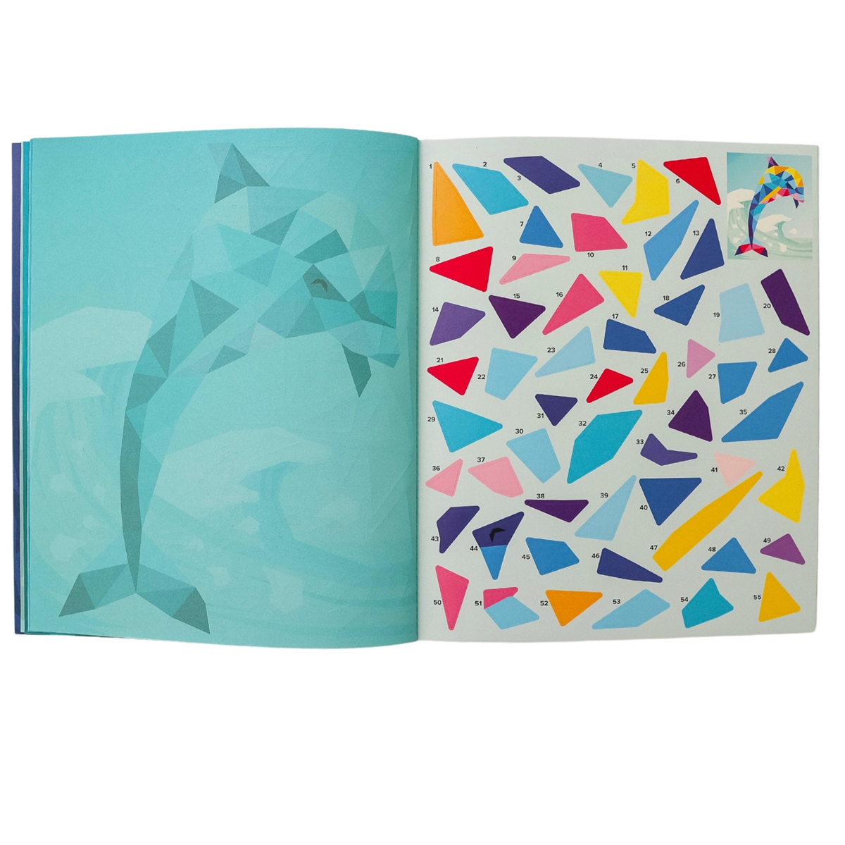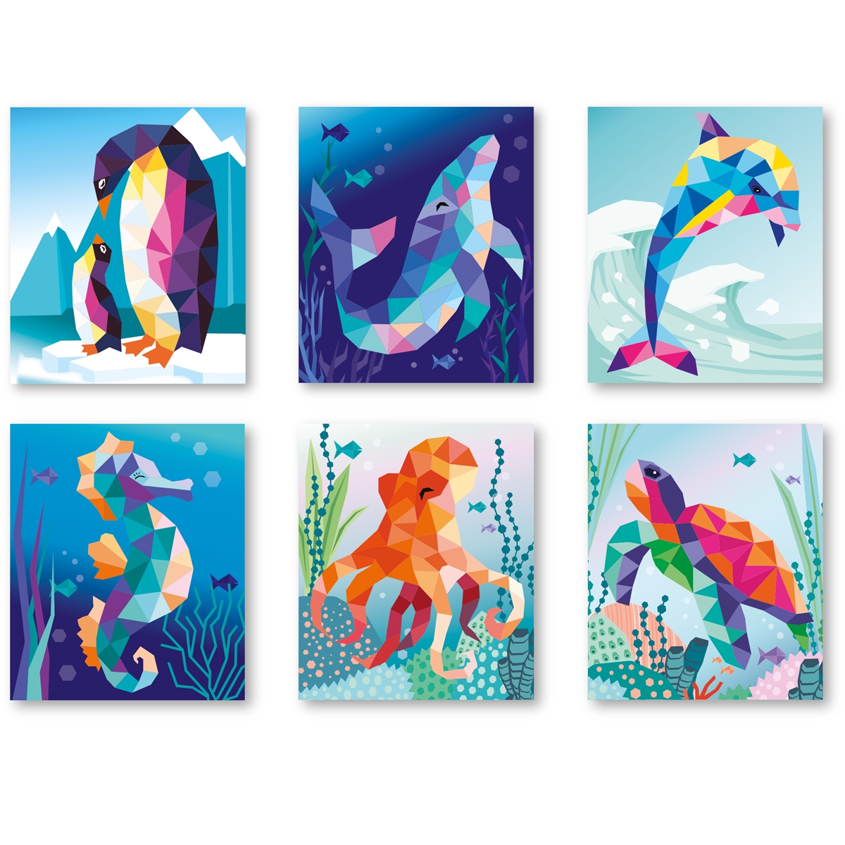 Einfach die passenden Sticker auf die dafür vorgesehenen, nummerierten Felder kleben und schon entstehen Sticker für Sticker schöne Kunstwerke zum Thema Ozean.